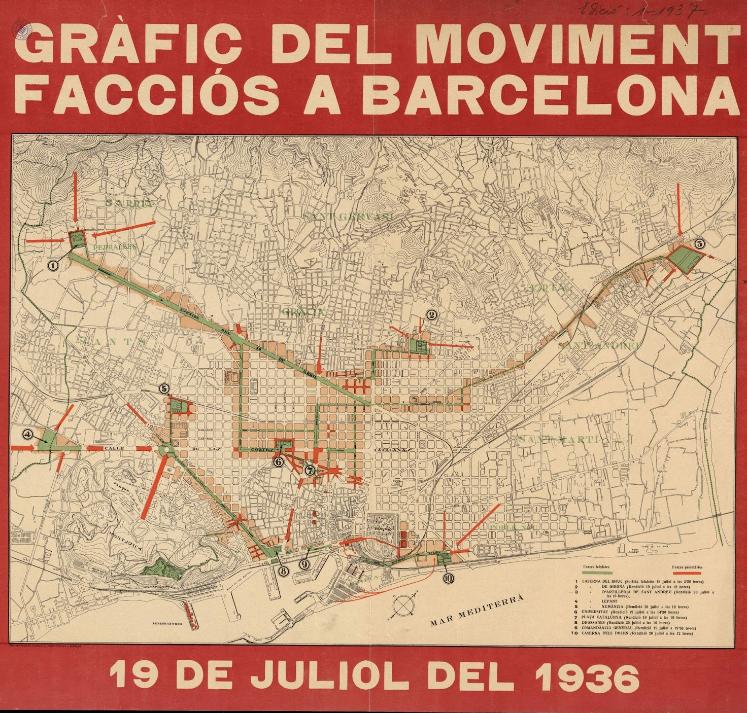 - (1930s) From the Second Republic to the outbreak of the Spanish Civil War, the anti-fascist resistance and working class defense of Barcelona in July 1936.